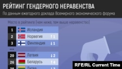 Средний показатель гендерного неравенства по миру проходит между Мальтой (93 место с показателем 0,682) и Грузией (94 место с показателем 0,679). Россия находится выше этой линии, тогда как Армения и Азербайджан – ниже.
