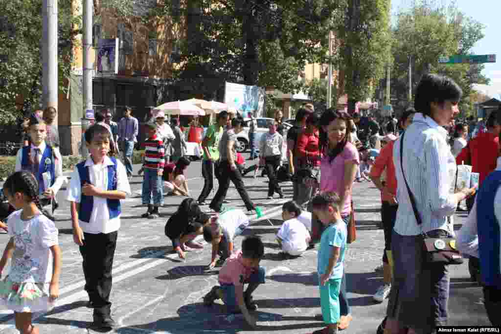 Впервые в самом центре кыргызской столицы 16 сентября прошел уличный фестиваль «KG Street Fest Пешеходный Рай». Улица Киевская от памятника героям Баткенской событий до улицы Исанова была разбита на 5 кварталов художников, танцоров, роллеров, юных инспекторов ПДДД и музыкантов. Фестиваль проводился мэрией города Бишкек совместно с Японским агентством международного сотрудничества (JICA) в рамках проекта «Исследование по совершенствованию городского транспорта в Бишкеке». Фото Алмас Ысман, "Азаттык", Кыргызская служба РСЕ\РС