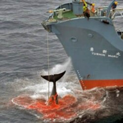 Cамую жесткую борьбу активисты Гринпис ведут с китобойными судами.