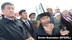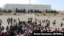 Еще до полудня к собравшимся перед зданием облгосадминистрации и мэрии Оша вышел полномочный представитель правительства КР в Ошской области Сооронбай Жээнбеков: