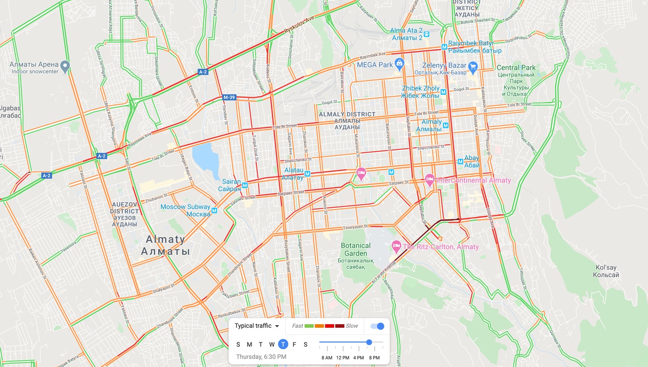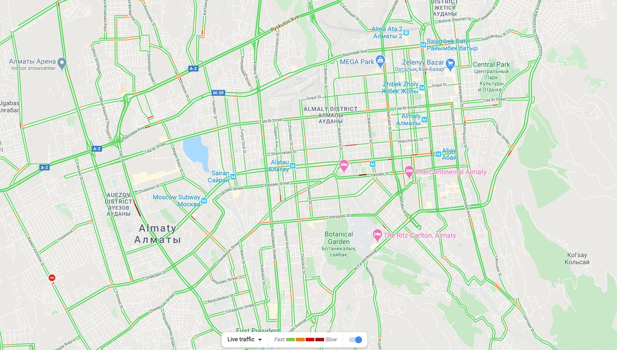 Трафик в Алматы в четверг, 16 апреля 2020 года 18:30