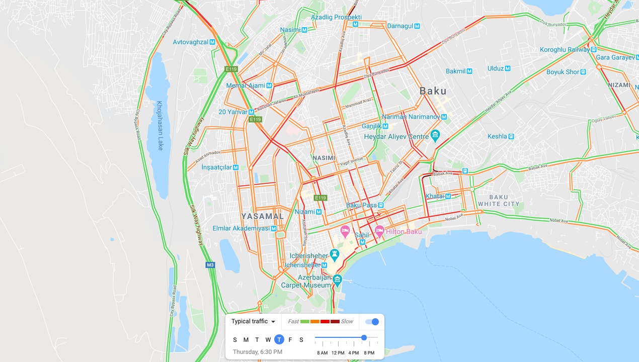 Типичная дорожная ситуация в Баку в вечерний час пик в четверг