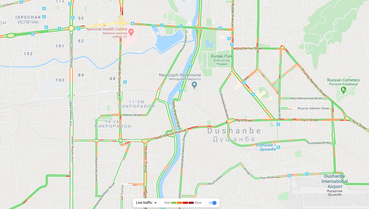 В Душанбе традиционно пробочным местом считается проспект Сино, через который следует непрерывный поток пассажирских и грузовых автомобилей с трассы Душанбе – Чанак, идущей на север, в Узбекистан. Другими проблемными зонами были проспект Сомони, который связывает две части Душанбе по обоим берегам реки Варзоб, и проспект Рудаки, на нем расположен комплекс зданий правительства, и он же связывает север и выезд на узбекскую трассу с центром "старого" Душанбе.