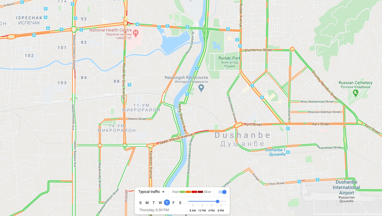 Трафик в Душанбе в четверг, 16 апреля 2020 года 18:30