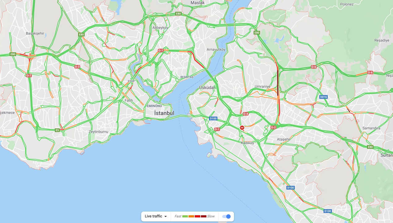 После введения карантина пробки практически исчезли. Несмотря на то, что в районе Босфорского моста все еще скапливается транспорт, его количество значительно снизилось.