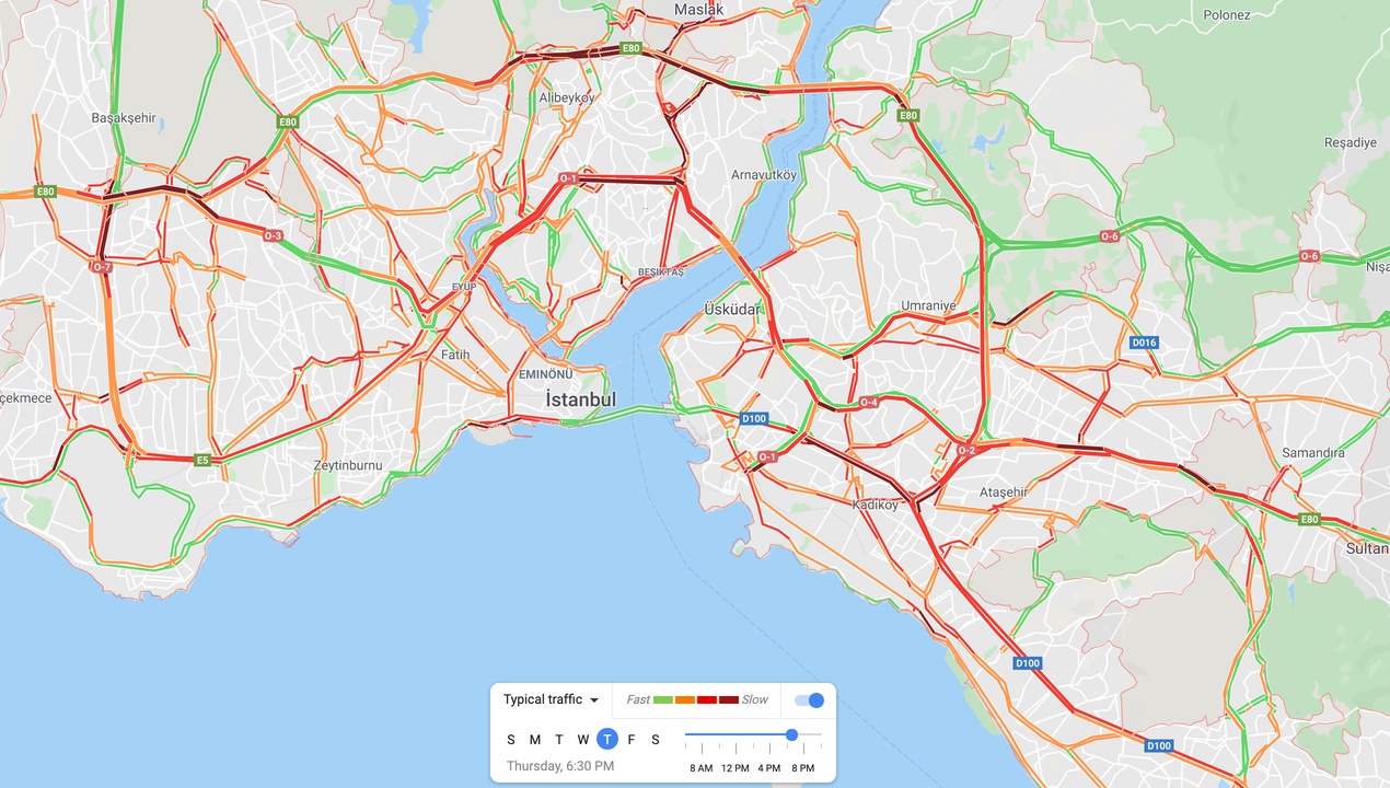 Пропускная способность Стамбула достаточно низкая в том числе из-за того, что он расположен на проливе Босфор, который отделяет азиатскую часть Турции от европейской. Традиционно на мостах через Босфор скапливается огромное количество машин. По данным международной компании по анализу дорожного трафика INRIX, ежегодно жители Стамбула простаивают в заторах около 153 часов, а средняя скорость в центре города не превышает 18 км/ч.