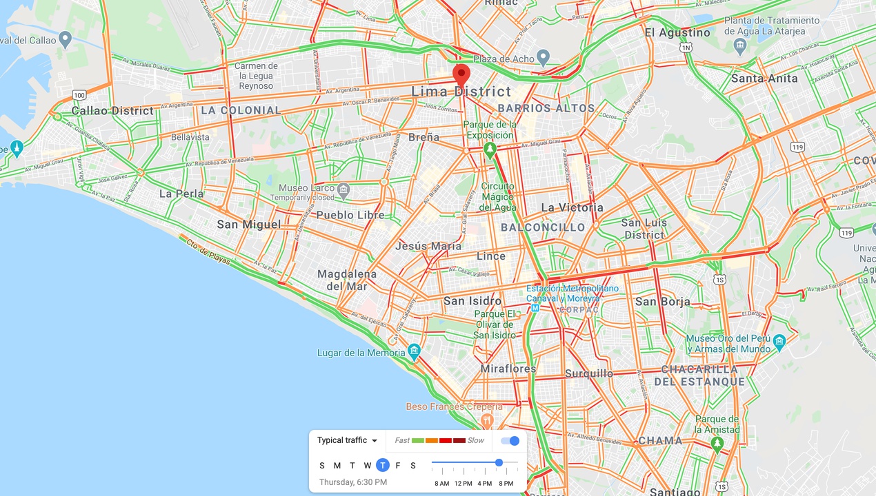Трафик в Лиме в четверг, 16 апреля 2020 года 18:30