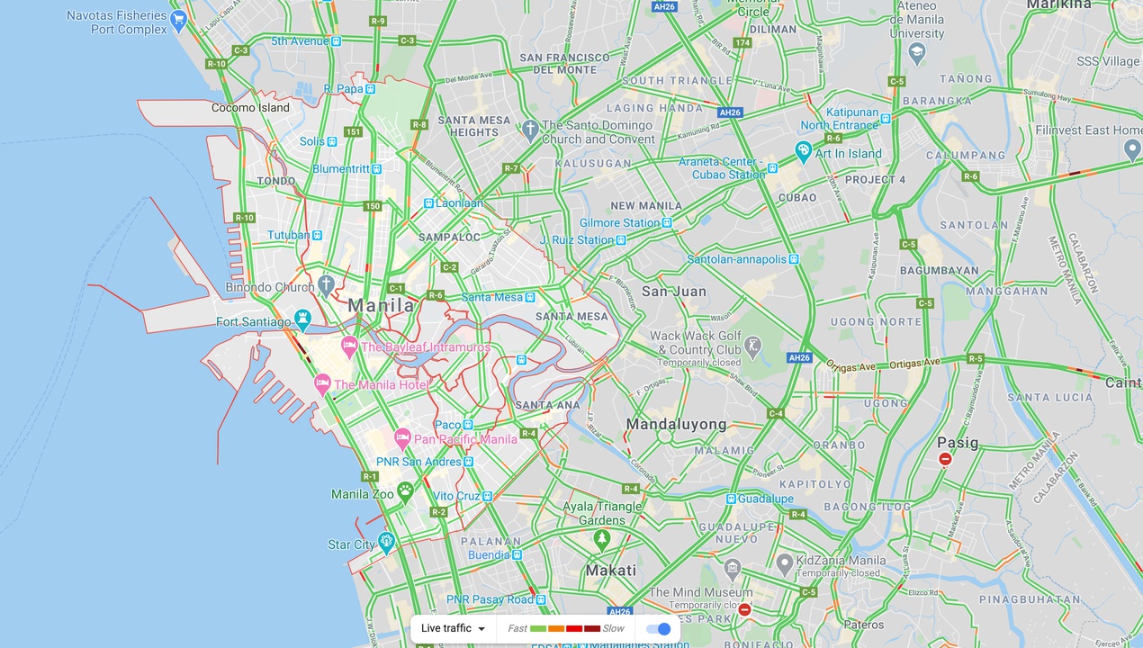 Трафик в Маниле в четверг, 16 апреля 2020 года 18:30