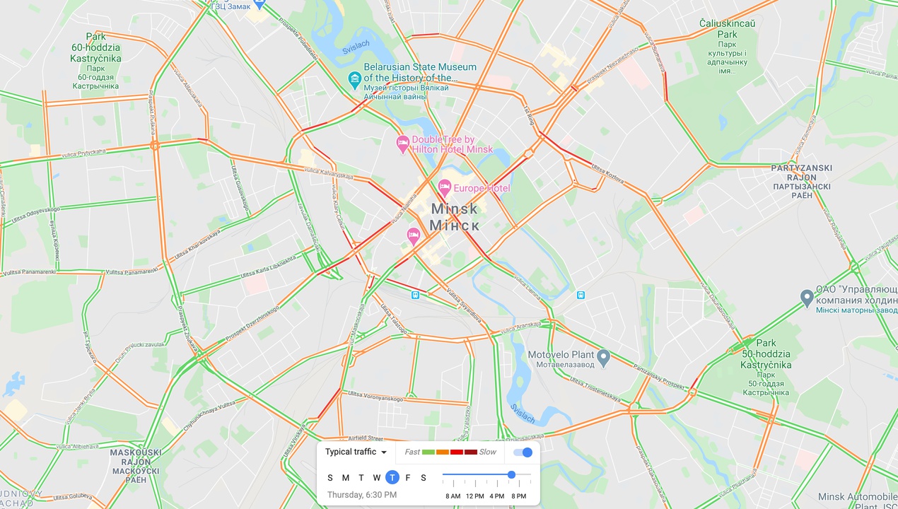 Типичная дорожная ситуация в Минске в вечерний час пик в четверг