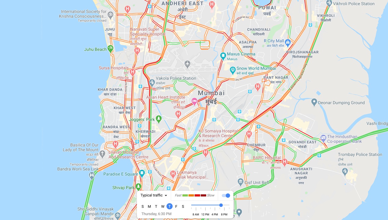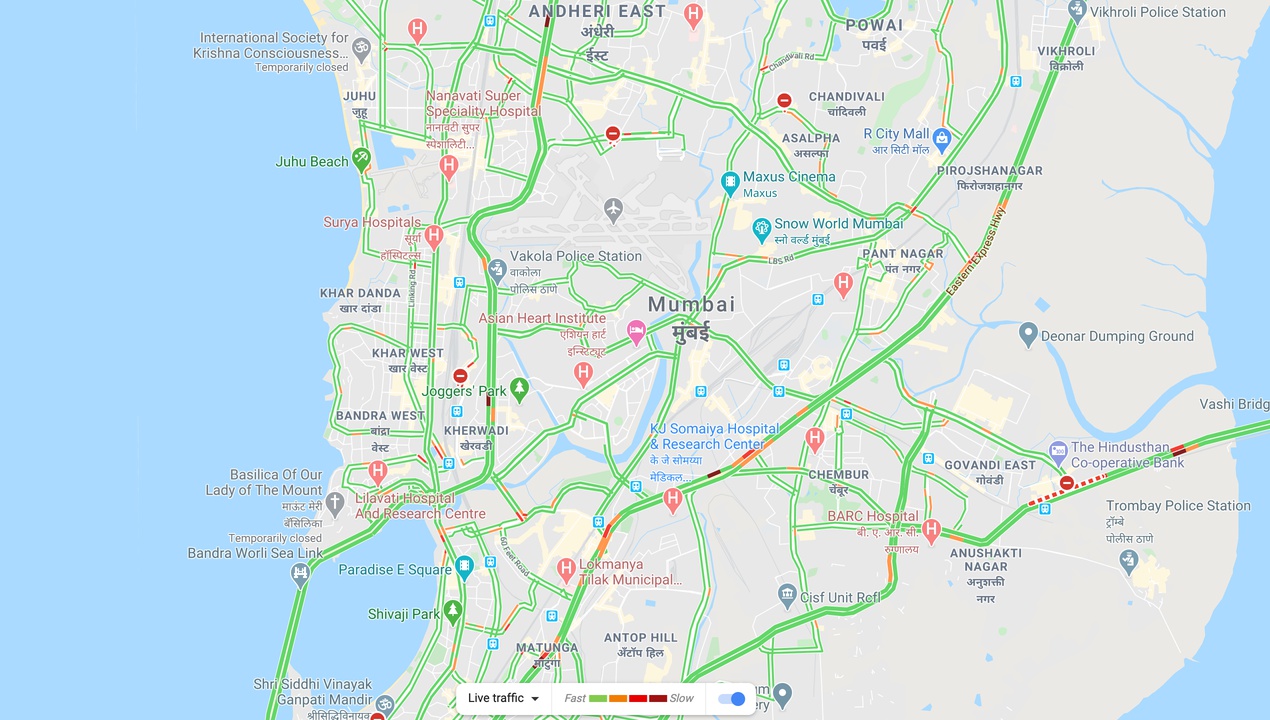 Введение карантинного режима значительно разгрузило дороги в Мумбаи. По состоянию на вечер 16 апреля в городе практически не было участков с затрудненным движением.