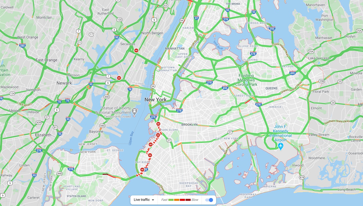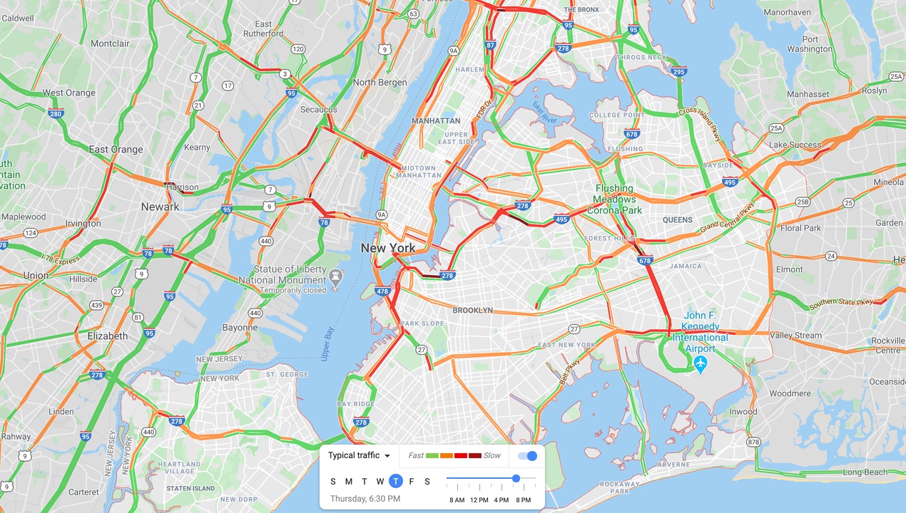 Трафик в Нью-Йорке в четверг, 16 апреля 2020 года 18:30