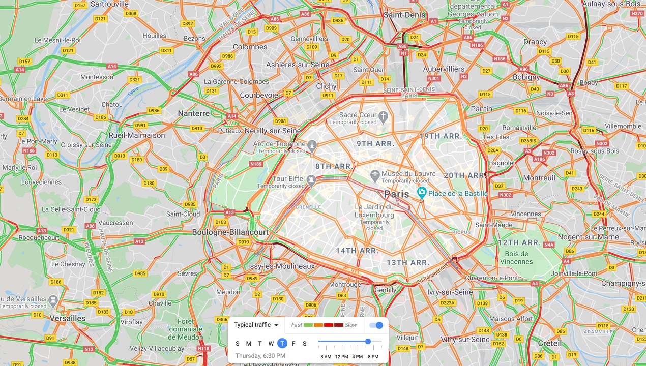 Трафик в Париже в четверг, 16 апреля 2020 года 18:30