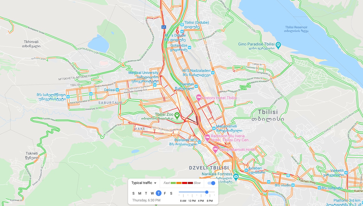 Типичная дорожная ситуация в Тбилиси в вечерний час пик в четверг