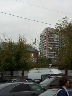 11.40 Как сообщает корреспондент Радио Свобода, напротив здания Мосгорсуда на углу многоэтажного жилого дома активисты повесили плакат "Богородица, Путина прогони".