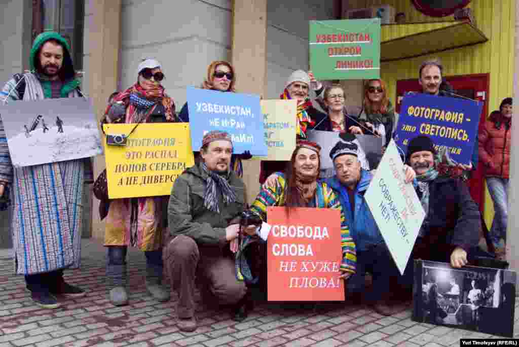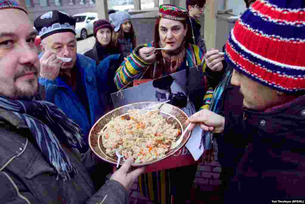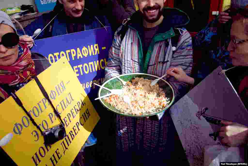 Московские журналисты и фотографы провели у посольства Узбекистана "плов-пикет" в защиту прав фотожурналистов. Русская служба РСЕ\РС