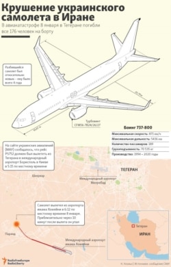 Среди погибших, по предварительным данным, – граждане Ирана, Канады, Афганистана и ряда стран Европы. По информации СНБО, украинцев на борту было одиннадцать: девять членов экипажа и двое пассажиров. Посольство России в Тегеране заявило, что россиян на борту "Боинга" не было.